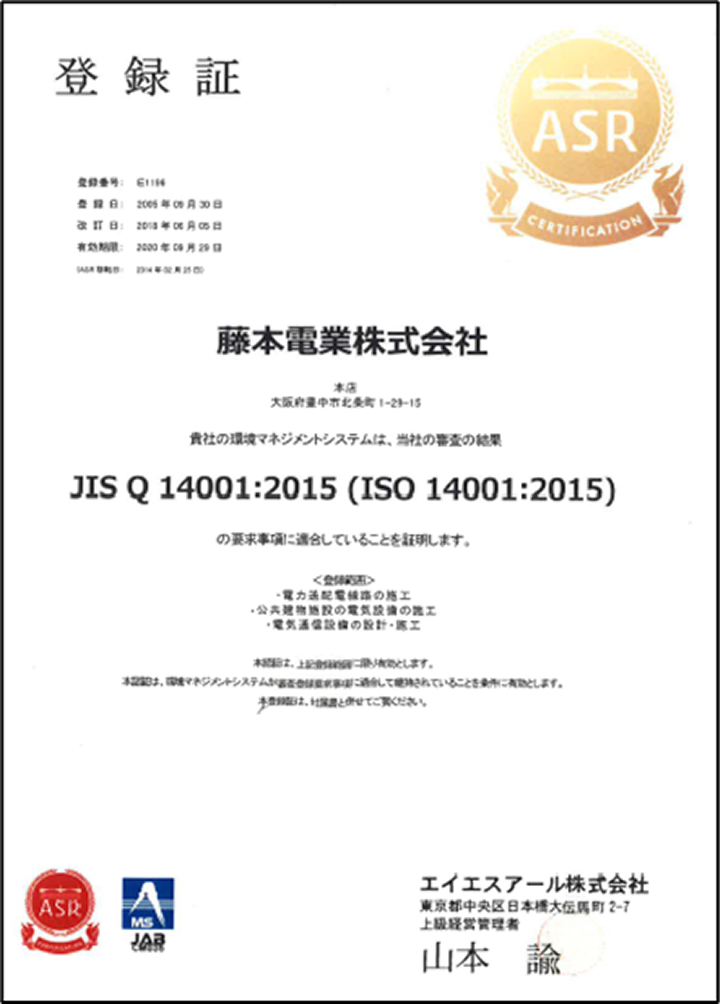 E1196 適用規格 JIS Q 14001:2015(ISO 14001:2015)