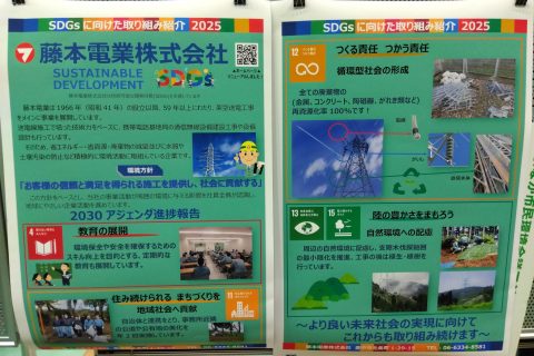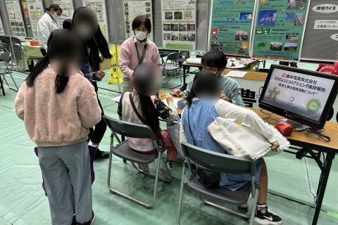 「あなたのひと工夫で未来を変える」をテーマに、弊社では環境活動の紹介や簡単な「鉄塔クイズ」という